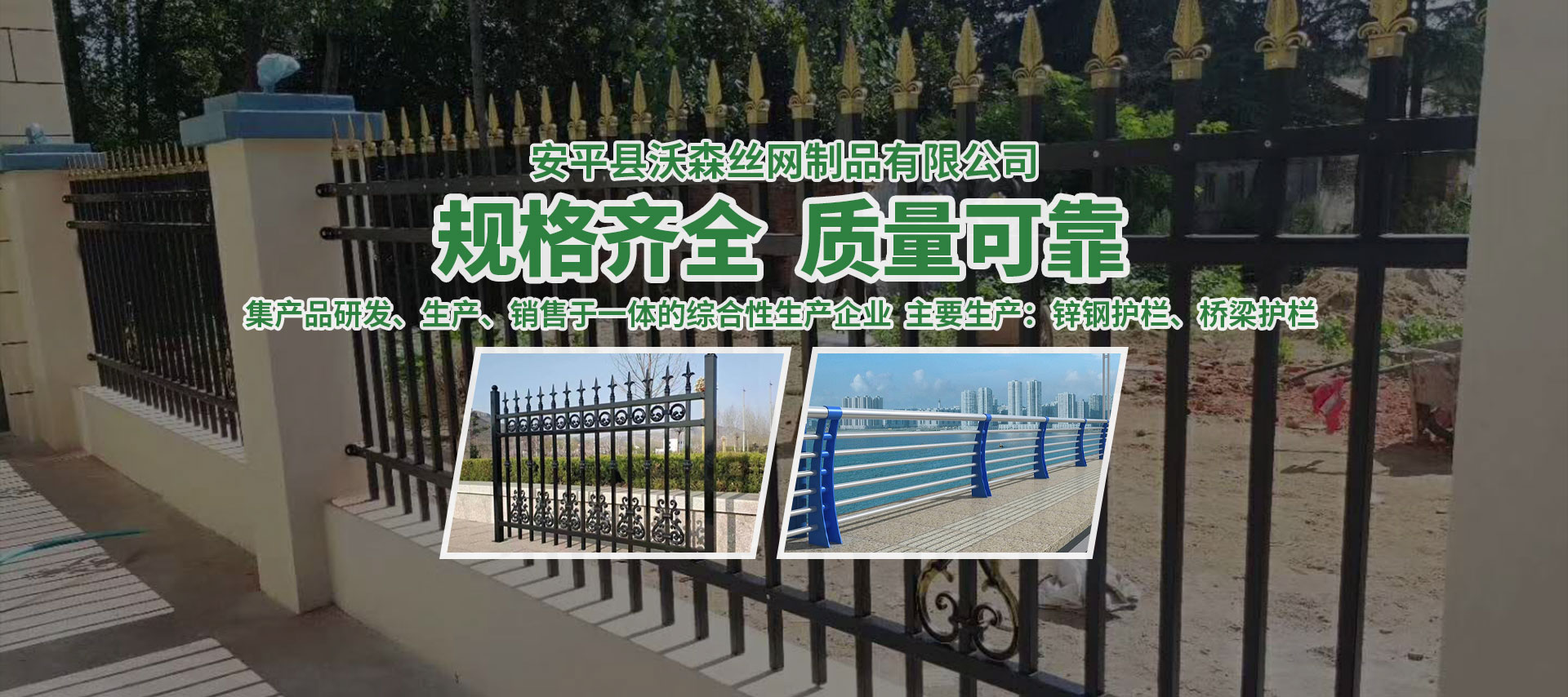 安平縣沃森絲網制品有限公司位于北京天津、石家莊三大城市的交叉點--***的“中國絲網之鄉”--河北省安平縣,生產:鋅鋼護欄、草坪護欄、京式護欄、球場圍欄、市政護欄、不銹鋼絲 、軋花網、護欄網、鋼格板系列產品,可根據客戶圖片、圖紙或樣品進行設計、生產、加工服務。